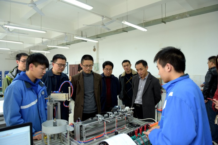 成都石化工业学校校长周川益和黎定成、刘遵勇两位副校长热情接待了来宾,带领来宾先后参观了学校机械实训中心、新能源汽车实训中心、图书馆、创业街、禁毒教育基地、汽修实训中心、服装和旅游实训中心以及电子实训中心。在参观中,张武校长深入了解了学校在省示范校建设、产教融合、特色专业打造等工作的建设情况,对学校的教学环境、教学管理、省示范校建设等给予高度评价,并希望两校能多搭建交流平台,加强沟通交流,资源共享,共同成长。