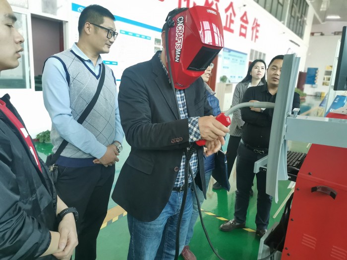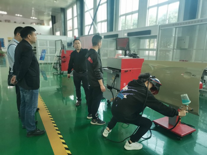 此次调研受到了成都精沛科技有限公司董事长付尚波的热情接待。座谈会上,付尚波董事长为老师们介绍了公司基本情况及所涉及业务和发展的方向后,双方分别围绕当前机械制造业转型升级、企业对数控专业人才需求变化、技能人才培养情况以及校企合作等相关事宜进行探讨和交流。会后,付尚波董事长及技术部负责人带领老师走进企业实地参观,并现场体验了智能虚拟喷涂实训系统、智能虚拟焊接实训系统、虚拟工业机器人仿真工作站等智能虚拟实操设备。