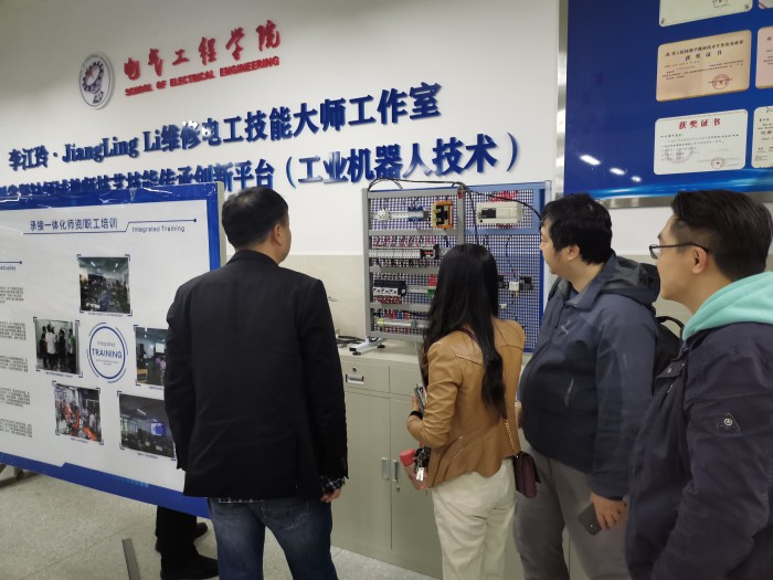 成都工贸职业技术学院电气工程学院副院长周皇卫等热情接待了项目组成员一行,调研中,周皇卫副院长对学院专业设置、师资队伍建设、实训条件、校企合作进行了介绍。学院学科带头人王佩针对智能制造(工业机器人方向)专业设置、课程定位、课程架构、课程教法等多方面进行解读,并结合学院近年专业运行情况对成都石化工业学校专业建设提出合理化建议。成都石化工业学校调研人员详细咨询了智能制造专业方向的课程体系、设备设施配备、人才培养模式等情况。