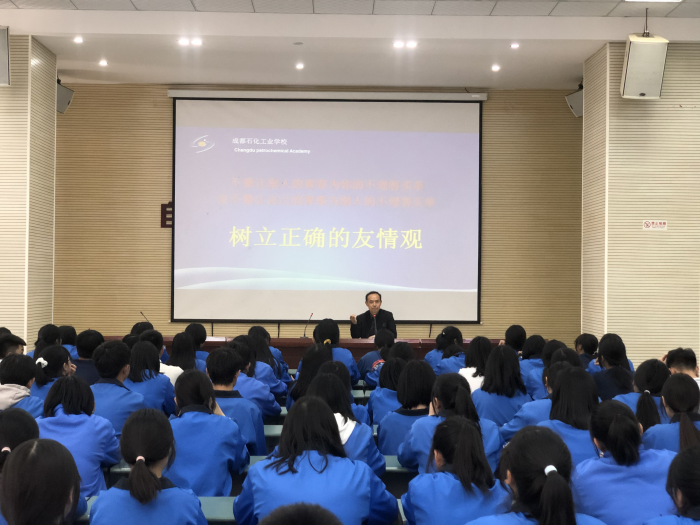 为了强化2019级学生的校规校纪教育,引领学生树立正确的友情观,构建和谐的同学关系,理性规划自己的未来,3月30日,成都石化工业学校综合科在多功能厅开展了学生“自尊、自爱、自立、自强”主题教育活动。本次主题活动由综合科德育副科长主持,旅游、会计、建筑三个专业学生约300余人参与了本次活动。