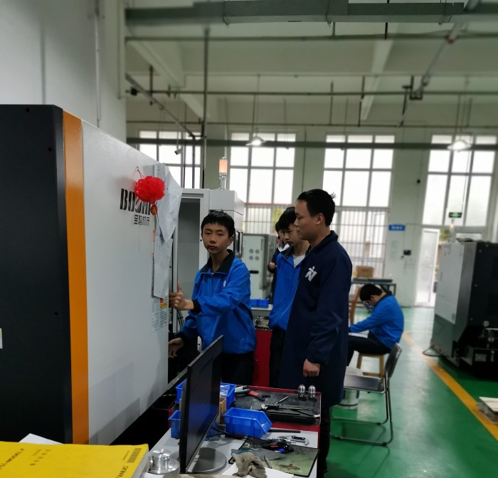 该科科长陈小弟鼓励同学们抓住现代学徒制班的培训机会,学好数控编程和操作技能,为以后进入企业打下基础,并力争把数控专业建成现代学徒制人才培养模式的示范点;教务处负责同志希望入选同学要珍惜学习机会,学有所成;2位企业大师要求同学们做到精益求精,在保障安全的前提下,胆大心细,养成数控操作工应该具备“6S”员工素养。