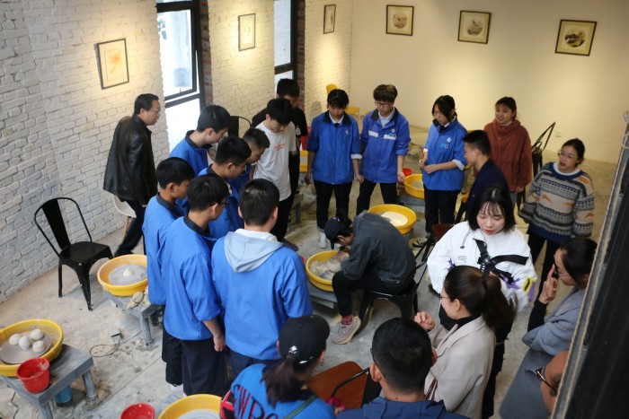 上午10:50分,参会人员参观了成都石化工业学校校外劳动教育实践基地——彭州花家,了解开展中职学生参与校外劳动教育实践活动取得的成效。随后大家来到另一个校外劳动教育实践基地——彭州白瓷艺术中心,观摩学校陶工户陶艺培训班的上课情况。大家现场交流如何利用校外实践基地落实劳动教育体验,培育工匠精神,传承非遗文化。对陶艺感兴趣的老师们还亲自体验陶艺制作——拉胚。观摩结束,与会老师纷纷对学校做实做细劳动教育赞叹不已,特别是与企业合作开辟校外劳动教育基地并开展农事劳动、传承工匠精神等有力推动了职业院校劳动教育全面铺开,取得了以劳树德、以劳增智、以劳强体、以劳育美的效果。
