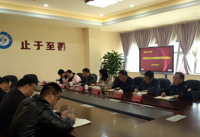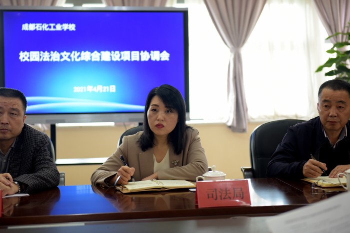 4月21日,“校园法治文化综合建设项目协调会”在成都石化工业学校学校第三会议室召开,中共彭州市委政法委禁毒办、彭州市司法局、彭州市公安局、彭州市检察院、彭州市法院、彭州市教育局、彭州市财政局及成都石化工业学校负责同志成参加会议。