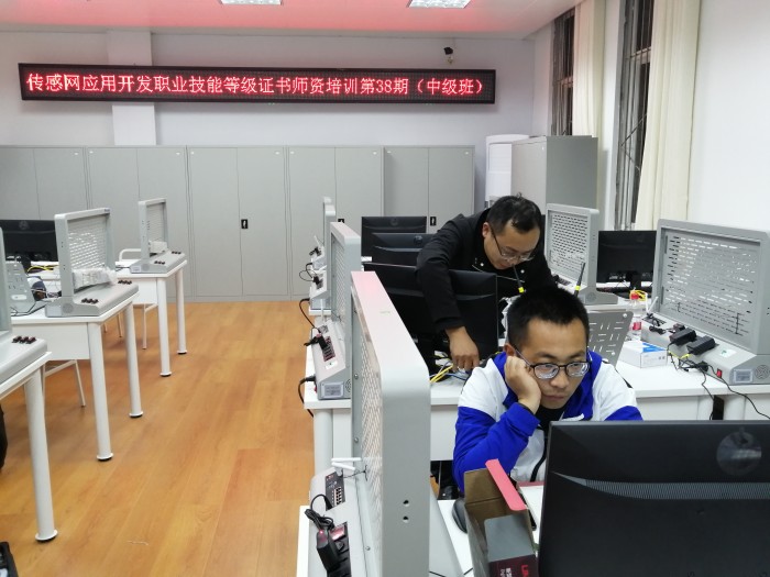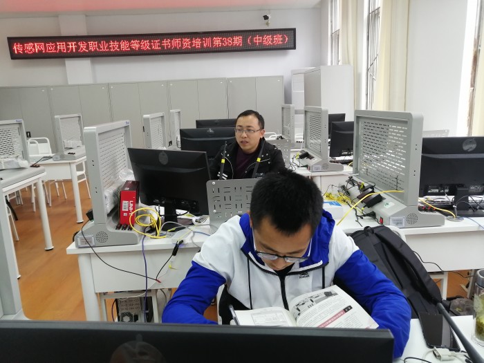 随着学校四川省示范中等职业学校建设的深入推进,成都石化工业学校正式将物联网技术应用列为专业方向进行建设,以此丰富电子技术应用专业学生的专业技能,拓展专业发展方向。1+X传感网应用开发考核站点建设作为电子技术应用专业物联网专业方向建设的第一期项目,师资培养是重中之重。虽然本次培训共有来自高校、中职共计30余名老师参加,学员学历水平从博士、研究生到本科生,培训强度,过关难度显而易见。为缩短与高学历、高水平同学的差距,三位老师刻苦学习、勤学苦练,每天晚上都利用休息时间主动自学复习,有时甚至熬夜到十一二点。正式这种奋力拼搏的精神,让他们最终不负众望顺利通过培训考试,取得了职业技能等级证书中级培训讲师资格,为学校电子技术应用专业物联网专业方向建设又迈出了坚实的一步。