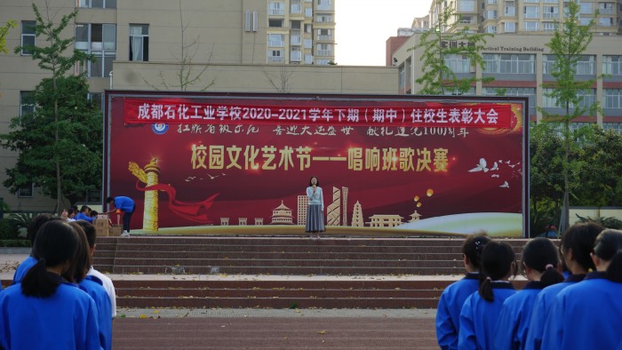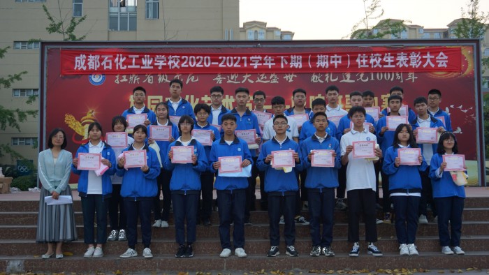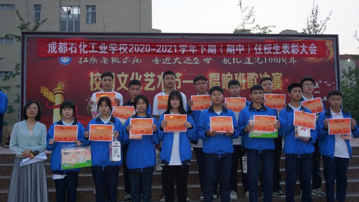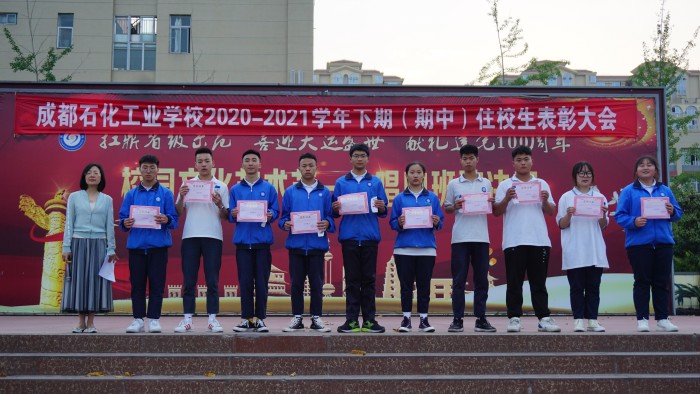 为树立住校生榜样,提升住校学生素质,5月7日,成都石化工业学校南北校区分别在运动场举办了“住校学生表彰大会”。