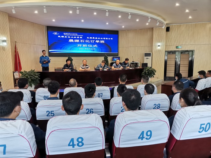 成都晟源石化有限公司常务副总经理马小军、总工程师宋永坤、总经理助理赵丽坤,成都石化工业学校党委副书记、工会主席段洪云,化工科相关负责同志,“晟源石化订单班”39名学员参加了开班仪式。