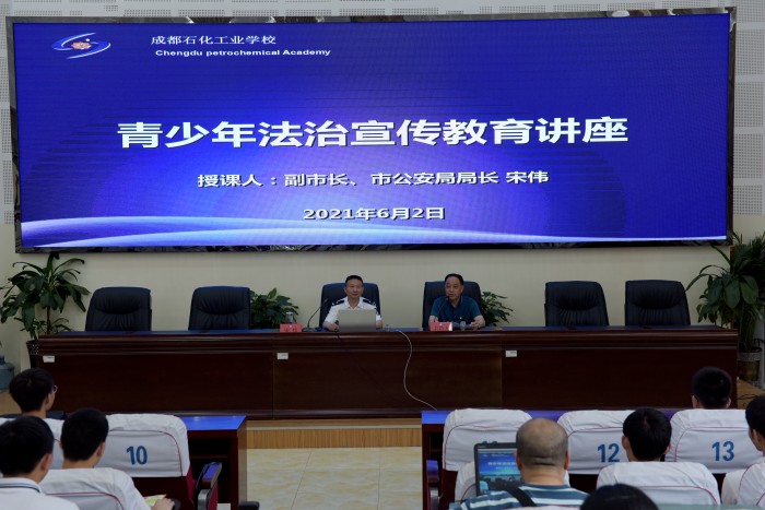 本场授课于当日下午两点在成都石化工业学校南校区109阶梯教室举行,200名同学在现场听课,学校南、北校区其他各班级学生在教室通过现场直播同步收看。宋伟同志围绕青少年法制宣传教育、禁毒知识专题讲座、反电信诈骗专题讲座、严防跨境赌博宣传教育、交通安全等五个方面的内容进行讲授。结合学校学生特点,用一个个生动具体的案例,以案释法,以法论事,深入浅出的为师生们讲授相关知识和经验教训,教会师生正确理解相关法律知识、掌握防范技巧,鼓励同学们增强使命感和责任感,遵纪守法,勤奋学习,走好一条光明大道的人生之路。希望同学们回到社区,做好一名法制安全宣传员,帮助群众防范毒品和电信诈骗等违法犯罪行为。宋市长的授课充分运用现代信息技术,条理清晰,表达全面,形象生动,为全校近五千名师生上了一堂别开生面的法制教育课。全校师生认真聆听、观看并记录下很多心得体会,获益颇丰。