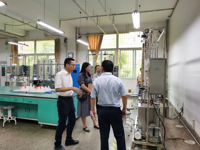 四川轻化工大学化学工程学院党委书记黄斌、党委副书记杨郭、化工实验中心主任梁晓锋热情接待了成都石化工业学?;た频椒萌嗽?。座谈会上,杨郭详细介绍了化工学院总体情况和专业建设思路,与会双方就化工类专业建设、实验实训基地建设经验,化工类专业对口升学方向进行了深入沟通和交流?;岷?,杨郭带领大家参观了化工实验中心。