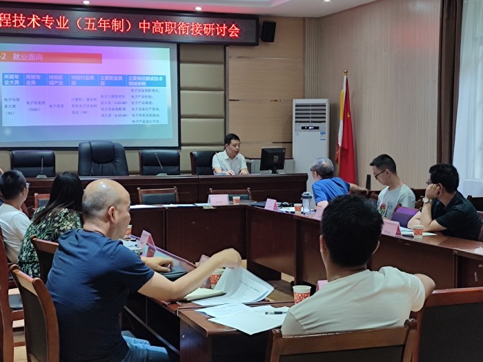 6月24日,成都石化工业学校与达州职业技术学校、北川七一职业学校、梓潼职业技术学校和绵阳九洲技工学校等受邀齐聚绵阳职业技术学院,参加电子信息工程技术专业(五年制)中高职衔接研讨会,绵阳职业技术学院信息工程系主任李川,副主任罗金生及各中职学校相关领导和教师参加了此次会议,会议的主要内容是讨论电子信息工程技术专业五年制大专班课程设置的合理性,各合作学校师资配置、实践条件及人才培养方案实施情况。