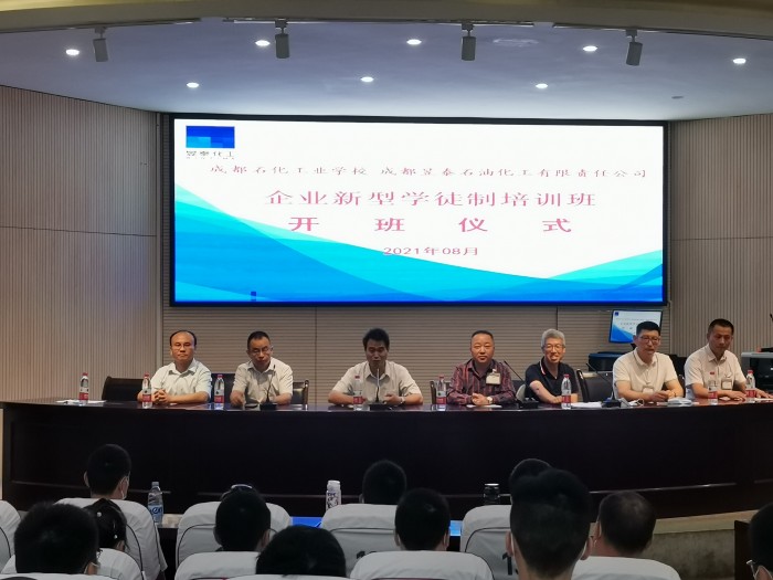 8月16日上午,成都新材料产业功能区企业——成都昱泰石油化工有限责任公司“企业新型学徒制培训班”开班仪式在成都石化工业学校北校区隆重举行。昱泰化工总工程师王忠、工程副总姜再峰、安全总监兼安全环保部部长刘珍志、乙烯焦油车间主任刘匡欣、成都石化工业学校副校长刘遵勇、培训处主任张斌、化工科相关负责同志、培训教师代表出席了开班仪式??嘁鞘接申盘┗すこ谈弊芙俜逯鞒?。