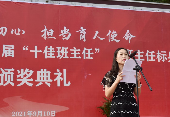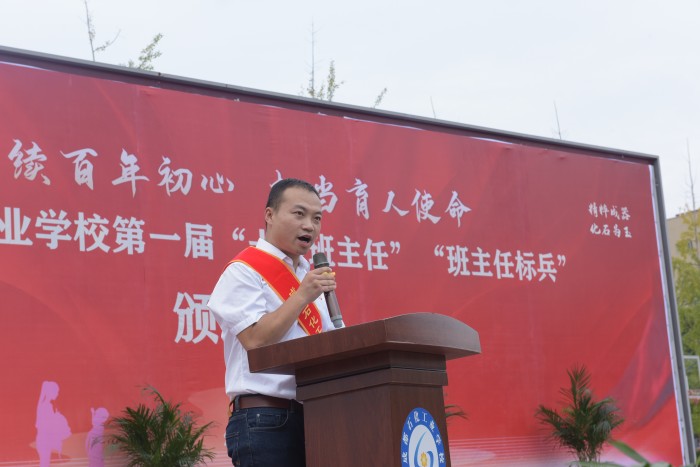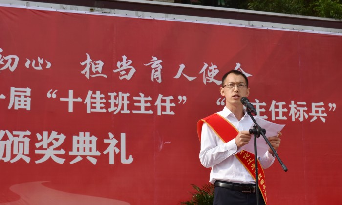 为表彰一批有爱心、有热情、有责任、有创新意识的优秀班主任老师,副校长刘遵勇、罗光宇代表学校宣读了成都石化工业学校关于第一届“十佳班主任”、“班主任标兵”的表彰决定。“十佳班主任”获得者是:张二、卞国蓉、刘银、张和友、魏勇、曾文菊、刘真丽、何家叙、余东、白玲;“班主任标兵”获得者是:张华琼、伍林、陈萍、朱礼琴、刘小平、张皓、唐世睿、李娟、谢艳、周晓东、周述琴、祝华平、杨波、马文敏、席礼君、左琴、唐小青、冯清双、罗威、简雪,老师们依次踩着长长的红毯,踏着感动的旋律,倾听着自己先进的班主任事迹,光荣的走向主席台。他们用认真细致和责任心深爱着自己的学生;用温暖的爱心与学生建立了崇高、无私、和谐的师生关系;用优秀的人格和情感力量引导、爱护、教育学生;把满腔的热情和充沛的精力奉献给了自己的学生,这就是“十佳班主任”、“班主任标兵”的平凡而动人的事迹。学校党委书记任传久、校长周川益、副书记段洪云、副校长黎定成代表学校为“十佳班主任”、“班主任标兵”佩戴绶带、颁发奖杯和荣誉证书。带着这份荣誉,“十佳班主任”余东,“班主任标兵”刘小平、朱礼琴、简雪作为获奖代表发言。他们向大家分享了自己的班主任工作经历中的艰辛、困苦、感动和欣慰。