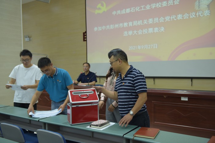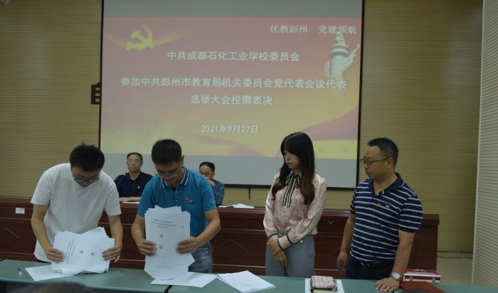会上,组织全体党员学习了《中共成都石化工业学校委员会选举参加中共彭州市教育局机关委员会党代表会议代表选举办法》(草案)暨《中共彭州市教育局机关委员会关于推选参加党代表会议的代表的通知〔2021〕06号》文件要求,说明了推选代表的条件和要求,公布了党员大会有关选举工作纪律,程序和选举流程。大会在充分发扬民主、广泛酝酿讨论的基础上,本着诚实、认真、负责的态度,采用无记名投票方式,推选出了参加中共彭州市教育局机关委员会党代表会议的党代会代表候选人名单。