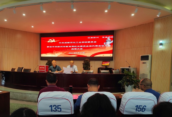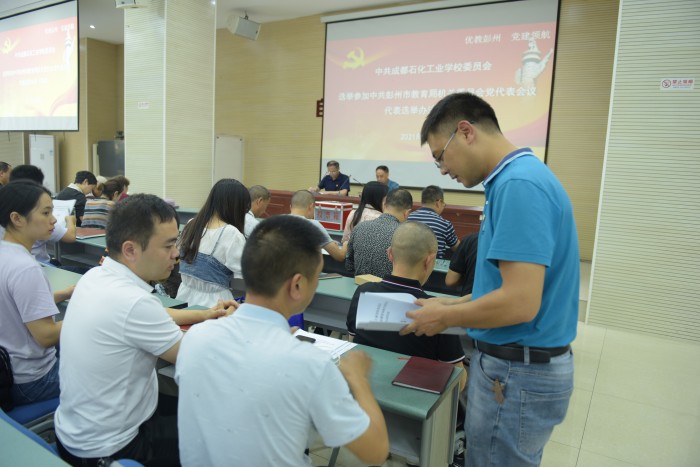 9月27日,成都石化工业学校召开党员大会,大会分南北校区同时举行,推选参加中共彭州市教育局机关委员会党代表会议的代表。本次会议由党委委员、副校长罗光宇和党委委员、党委办主任左茂云主持。