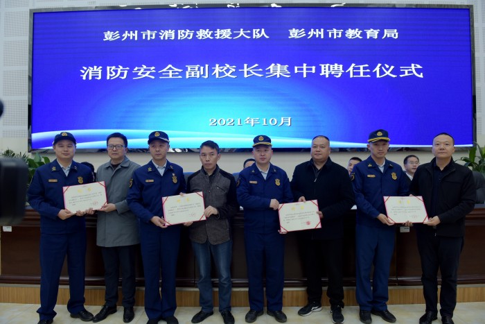 随后,市教育局应急管理科科长蔡敏宣读了彭州市消防安全副校长聘任名单,并由成都石化工业学校、彭州中学、彭州市延秀小学、彭州市实验小学等校长为各自学校消防安全副校长颁发聘书。