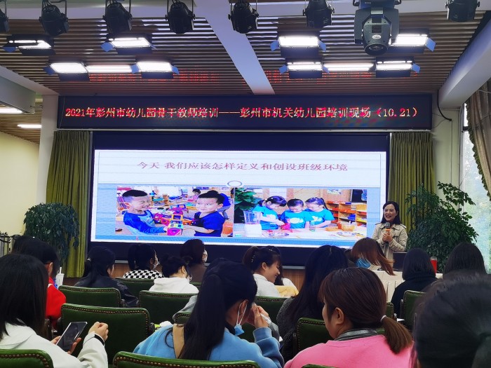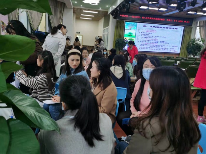 讲座上,成都市第十六幼儿园园长余琳介绍了班级环境的内容、班级环境的要素和班级环境的理想期待等内容,同时介绍了很多关于幼儿园的环境创设的案例,引导与会者对幼儿园环境创设有了新的认知和期待。