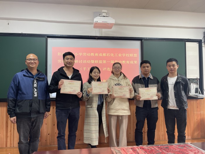 在工作研讨会上,彭州市教育局德育科领导向联盟9月、10月劳动教育课程分享的老师颁发了证书,并向联盟第一届劳动教育成果(手工作品)评选获奖学校颁发了证书及奖品。