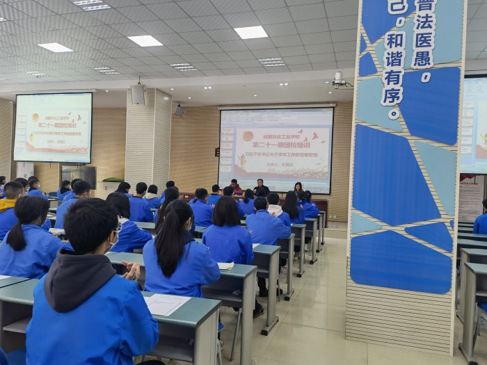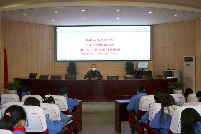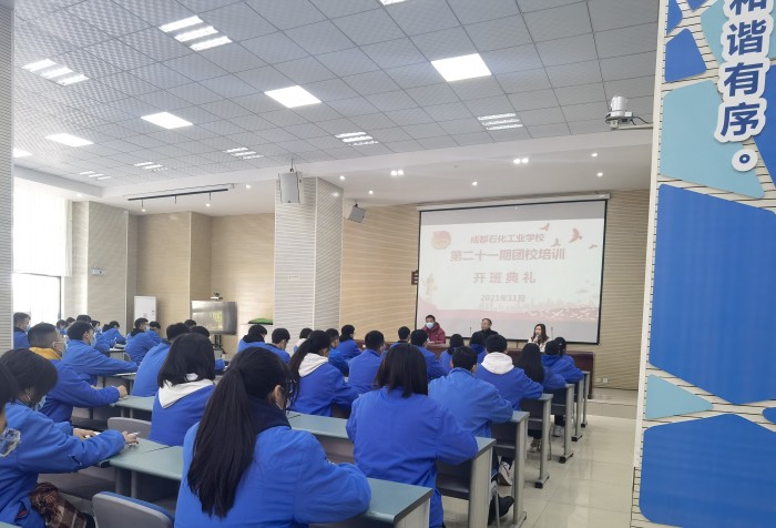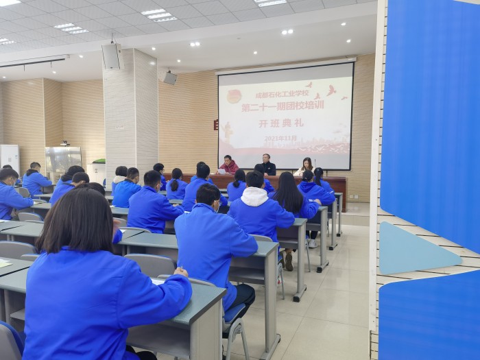 11月9日,成都石化工业学校第二十一期团校培训开班典礼暨团课第一讲在南北校区多功能厅顺利举行。学校党委副书记、工会主席段洪云,党委办主任左茂云,政教处、团委负责同志及新一届学生入团积极分子参加了典礼。