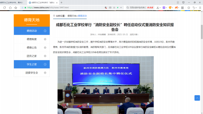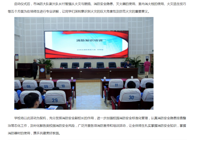 以开展第30个“全国消防日”为契机,进一步加强我校安全工作,全面提高在校师生的消防安全素质,增强防火自救和逃生能力。我校开展了以“落实消防责任 防范安全风险”为主题的消防活动。