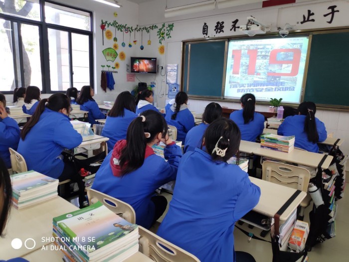 学校在“119”活动月中,紧紧围绕“落实消防责任 防范安全风险”宣传主题,充分利用安全教育课、班会、升旗仪式、电子屏、黑板报、宣传栏、微信、发宣传单、家校互动、隐患排查、应急疏散演练等一切可以利用的阵地、力量和形式,全方位、立体式、集约化地开展好系列活动,形成浓厚氛围。