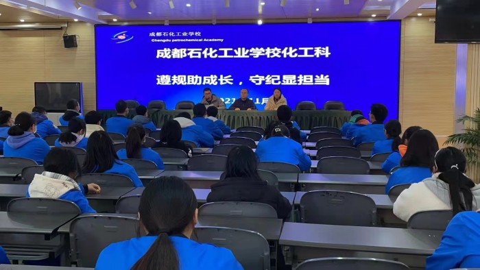 为继续巩固2021级学生入学教育成果,切实增强学生安全意识和法律意识,提高学生明辨是非的能力、依法自我保护的能力,11月17日上午,我校化工科组织2021级全体学生召开了“遵规助成长,守纪显担当”主题教育大会。