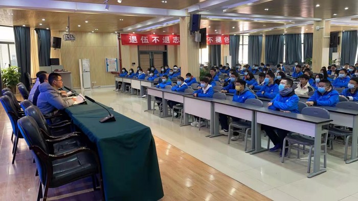 会上该科德育副科长从严守纪律规矩、常态化疫情防控、校园安全、青春期早恋四个方面对学生进行了教育引导。教学副科长从学生职业规划、专业发展前景、学生自信心建立对学生进行了指导。