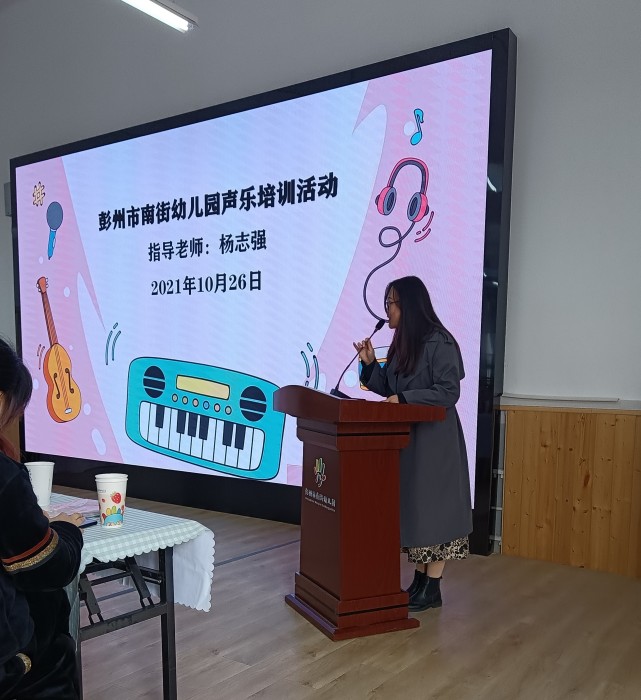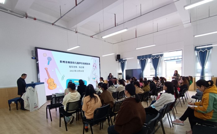 日前,成都石化工业学校幼儿保育专业主任杨志强老师受邀为彭州市南街幼儿园全体教师开展了为期二天的“音乐技能提升培训”, 南街幼儿园三分园执行园长陈美琪主持活动。