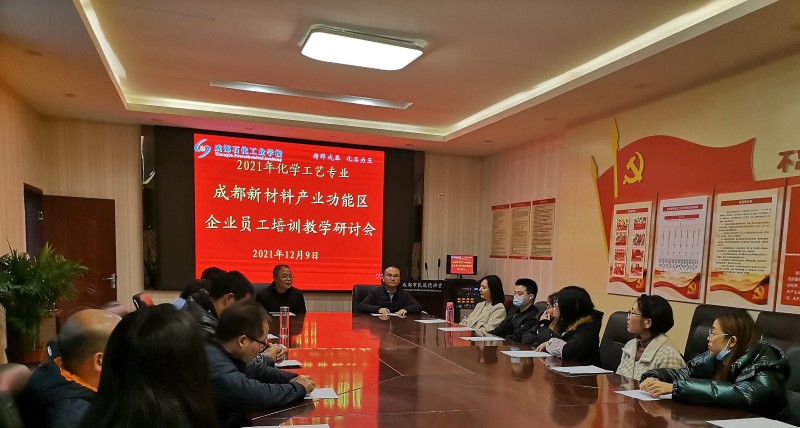 为进一步提高企业员工培训教学质量,使学员尽快适应石油化工企业岗位要求,12月10日上午,成都石化工业学校在北校区第三会议室组织召开了成都新材料产业功能区企业员工培训教学研讨会。学校党委副书记、工会主席段洪云,化工科相关负责同志出席了本次研讨会,化工科相关承担企业培训的专业教师参加了研讨会。