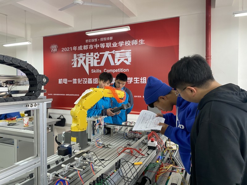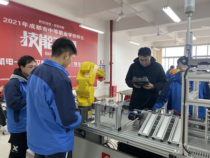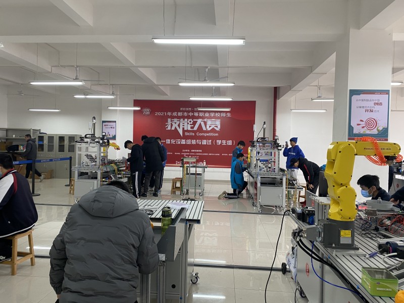 12月23、24日,成都市中等职业学校技能大赛(学生组)机电一体化设备组装与调试赛项赛前设备培训在成都石化工业学校南校区机电一体化实训室举行,来自13个学校的24个参赛队参加了培训。
