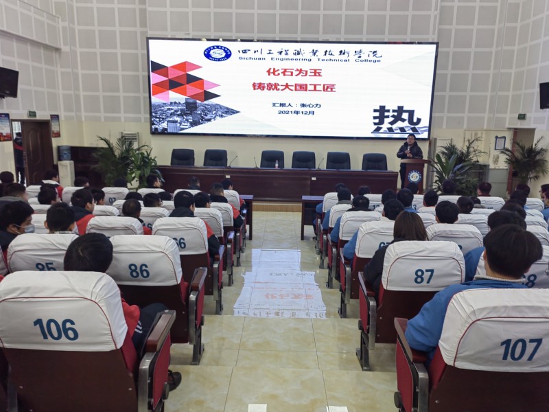 为激发学生对专业的认同感和学习热情,促进高三学子在高考前掌握科学合理的学习方法,发挥青春榜样的引导作用,12月29日,成都石化工业学校机械科邀请2017级优秀毕业生张心力(目前就读于四川工程职业技术学院,中共预备党员,四川省第三届“恒宇—舜宇杯”金相技能大赛一等奖及全国第十届“徕卡杯”大学生金相技能大赛一等奖获得者)回母校作了一场主题为《化石为玉 铸就大国工匠》的励志报告。