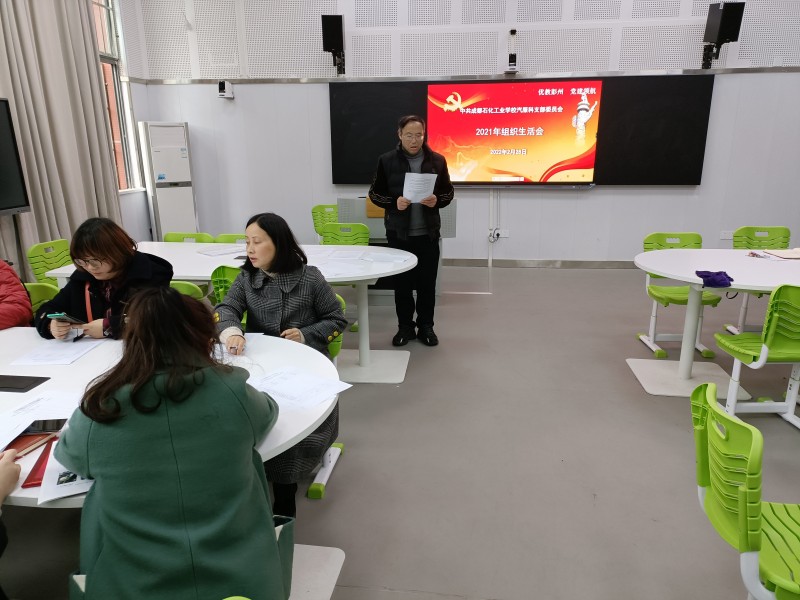 2月28日,成都石化工业学校党委组织各党支部开展了2021年度组织生活会暨民主评议党员大会。会议由各支部书记主持,各支部党员参加了会议。
