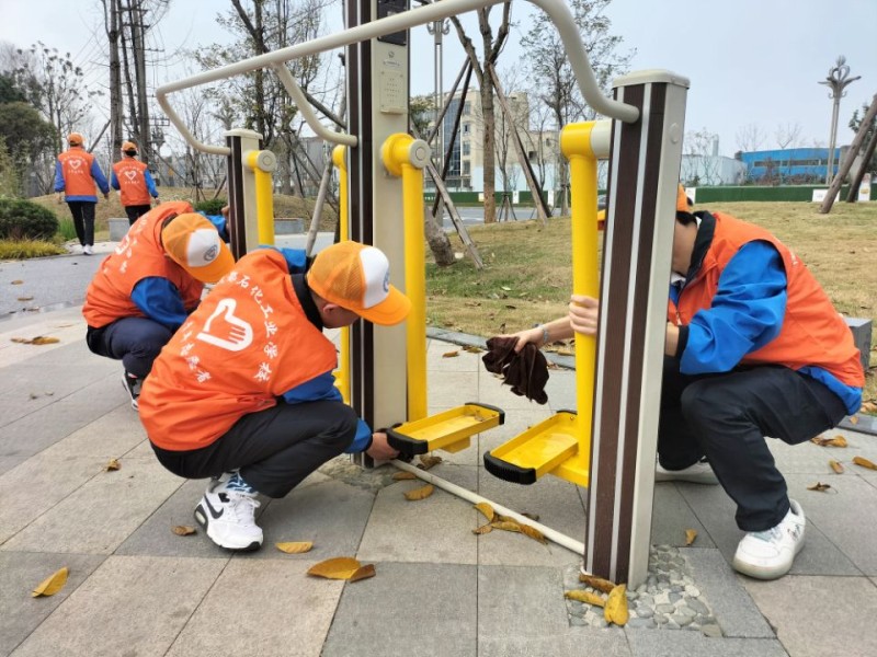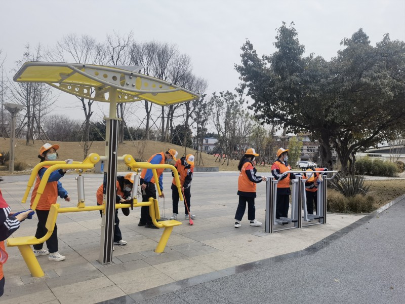 当日下午一点半,按照活动方案安排,党员教师与学生代表们来到彭州市高速路口,根据不同分工,对周边健身器材及公共区域进行打扫,志愿者们橙色马甲出现马上吸引了周边过往行人的纷纷驻足询问。活动中,志愿者们携带卫生工具,个个精神抖擞,发扬不怕脏、不怕累的奉献和志愿精神,干得热火朝天。有的打扫健身器材,有的清理墙上的小广告,有的抬着垃圾桶来回搬运垃圾,干得不亦乐乎。打扫过程中,路过的行人、执勤的交警同志、清洁工人们都自发的向志愿者们点赞。