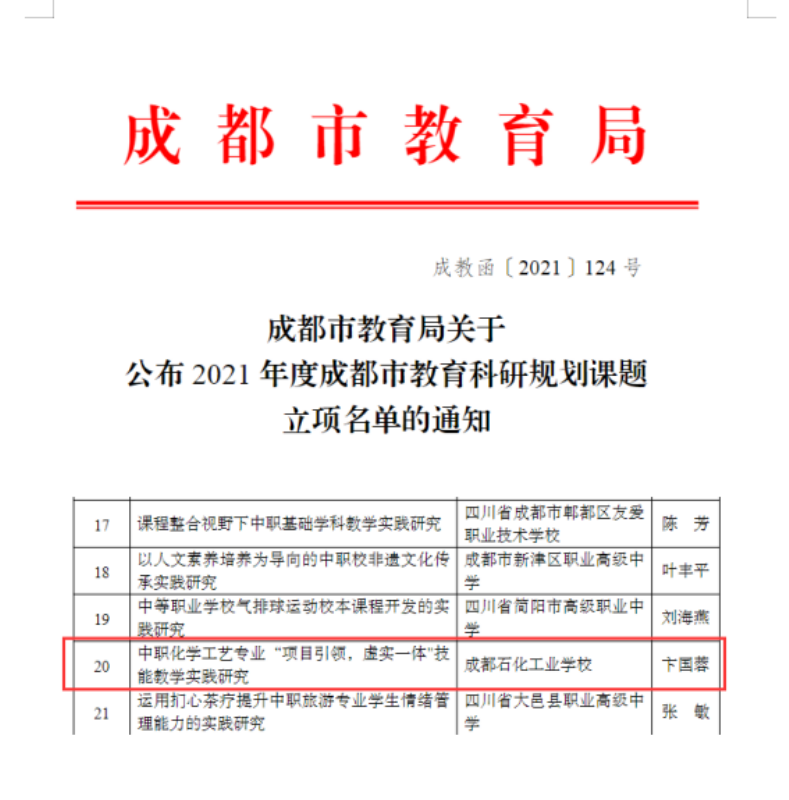 据悉,化学工艺技能大师工作室课题研究是化工科打造创新教学团队的手段之一,也是推动专业教学模式改革、提升专业教学质量的重要举措。相信通过科研课题的研究实践,必将促进专业内涵发展,助推专业高质量发展。
