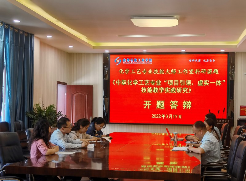 3月17日下午,成都石化工业学校化学工艺专业技能大师工作室参加了2021年成都市教育科研规划课题——《中职化学工艺专业“项目引领,虚实一体”技能教学实践研究》开题答辩会??翁庾槿宄稍辈渭恿嘶嵋?。