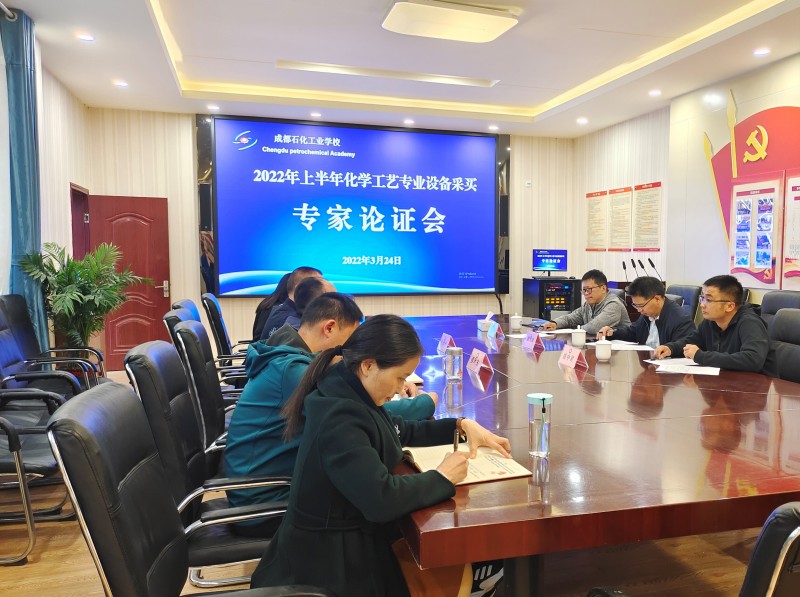 3月24日,成都石化工业学校化工科特邀请专家对2022年上半年化学工艺专业设备采买方案进行论证和优化。西南石油大学化学化工国家级实验教学示范中心副主任卿大咏,中国石油四川石化有限责任公司高级工程师刘昕,昱泰新材料科技有限公司生产部部长姚中君,学校党委副书记、工会主席段洪云,化工科相关负责同志,化学工艺专业教师代表参加了论证会。