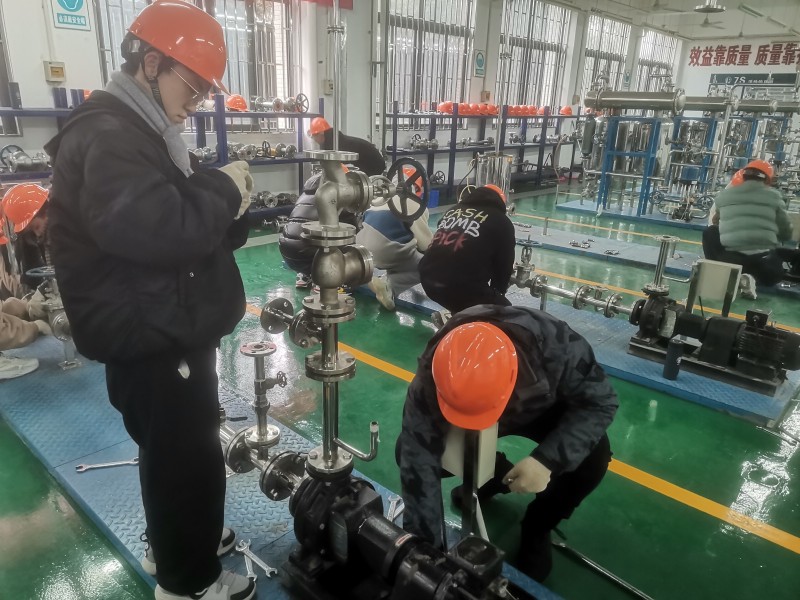 自2021年12月3日起,成都石化工业学校承担了“朗盈新材料科技订单班(第一期)”培训任务。朗盈(成都)新材料科技有限公司高度重视,公司相关负责人亲自审核订单班人才培养方案及授课计划,督查订单班培训管理工作?!袄视虏牧隙┑グ啵ǖ谝黄冢辈扇 靶F笏钡呐嘌的J剑丛谘M瓿苫纠砺奂盎〔僮骷寄芘嘌?,在企业完成具体生产工艺技能培训。根据企业需求,学校安排了《有机化工工艺》《HSEQ与清洁生产》《化工仿真》《化工单元操作》《化工设备机械基础》《化工仪表及自动化》《化工生产技术》等培训课程,并根据企业生产工艺对C5生产工艺、萃取精馏、化工安全等相关内容做了重点介绍。为确保订单班的培训质量,培训过程中采取过程性考核与结果性考核相结合的考核方式,严格审核培训教师授课内容,控制培训质量。培训结束后,校企双方还召开了教学质量诊断与改进座谈会。