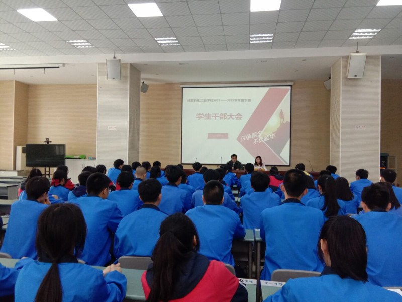 为提高学生干部的综合素养和工作能力,明确责任和任务,进一步激发学生干部的先锋模范带头作用,4月6日中午,成都石化工业学校南校区组织全体学生干部在多功能厅召开了学生干部大会。