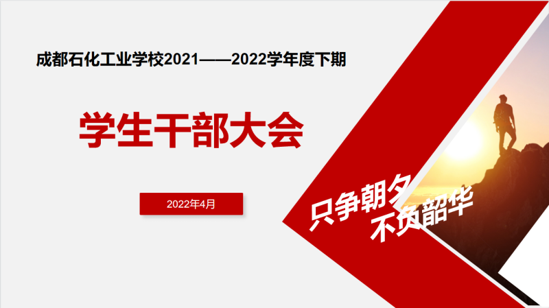 只争朝夕,不负韶华,本次学生干部大会进一步明确了学生干部的各项职责,提升大家的思想认识和综合素质,为打造一支能力强、实干精神佳的学生干部队伍奠定了基础,切实引导全体学生干部们在实践中磨砺自身,善于洞察,勤于反思,争做新时代优秀青年。