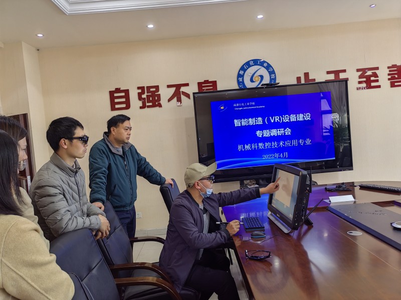 为贯彻落实教育部《关于开展职业教育示范性虚拟仿真实训基地建设工作的通知》文件精神,主动适应“互联网+职业教育”发展需求,4月7日,成都石化工业学校机械科分别就VR沉浸式教学设备、机械实训基地智能制造虚拟仿真实训室建设方案进行研讨,机械科科长及部分骨干教师参加本次培训及研讨会。
