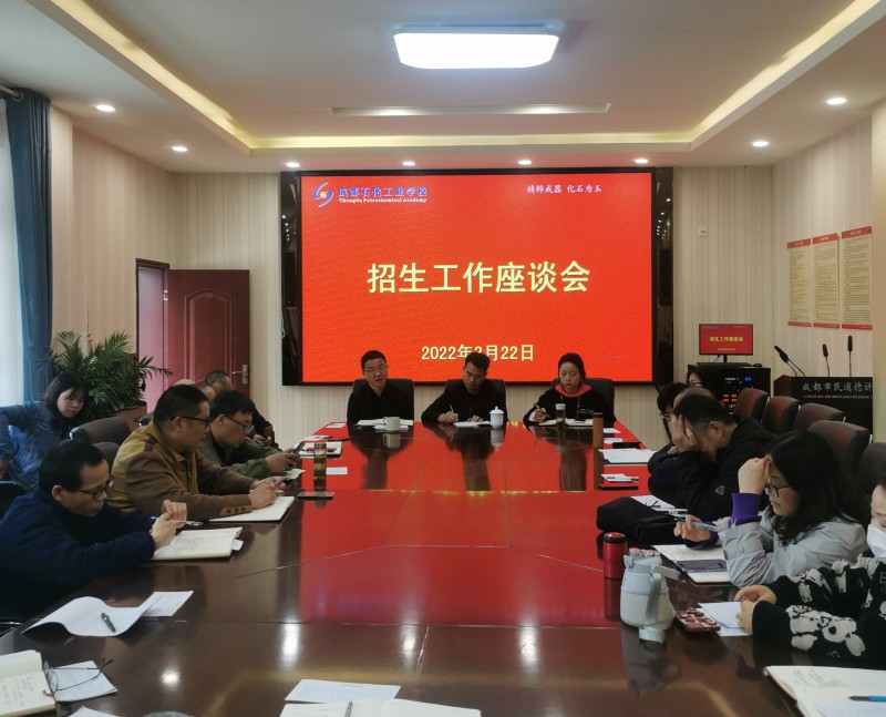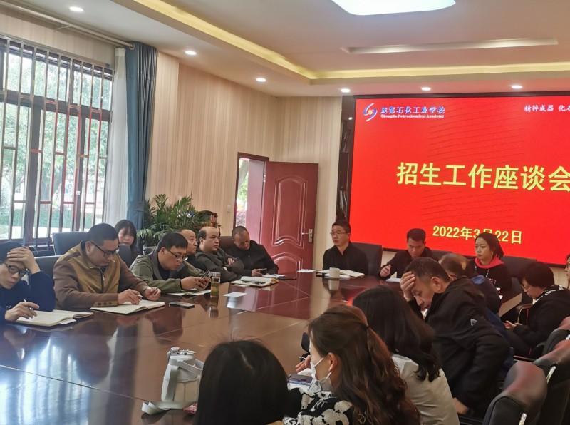 近日,成都石化工业学校在北校区举行了2022年招生工作座谈会,全体行政和负责市内初级中学招生工作的教师参加会议。
