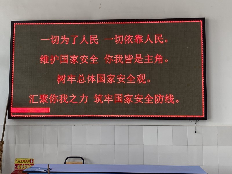 学校充分利用学校 LED 、校园宣传系统宣传国家安全知识,促进学生的思想道德修养建设,提高同学们的国家安全意识,做个知法、守法的好公民,为创建和谐社会做出贡献。