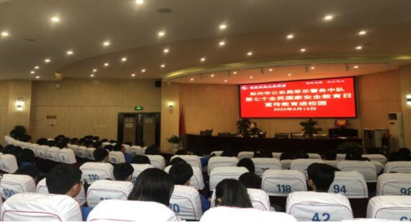 4月14日下午,学校法治副校长彭州市隆丰街道军乐警务中队付晋教导员来到校开展专题讲座,向学生讲述了国家安全日设立的目的、习近平总书记提出的“十个坚持”、“五个统筹”、国家安全的16个方面基本内容等内容,并着重就防恐怖袭击等进行介绍和演示,并叮嘱青年学生要时刻践行“二十四字”社会主义核心价值观,学会遵纪守法,用工匠精神去做人做事,并恪守本分,坚守底线,为国家安全奉献自己的力量。