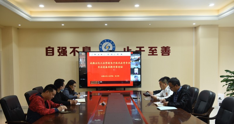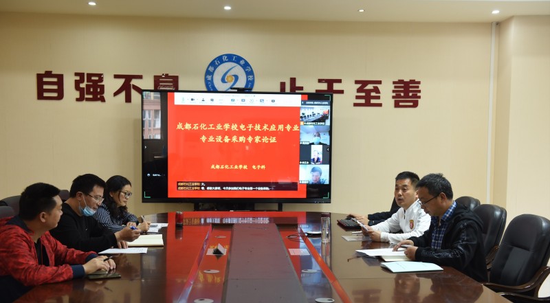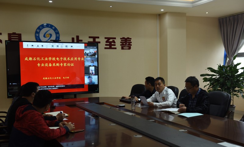为确保专业设备采购方案的有效性和规范性,近日,成都石化工业学校电子科在南校区第三会议室举行了电子技术应用专业设备采购专家论证会,主要就电子技术应用专业增加用于日常教学和学生技能大赛训练用的机电一体化设备采购方案征求专家意见。四川省宜宾工业职业技术学校张杨部长、成都电子职教集团专家组组长黄德开,专家组成员黄洪刚、张孝剑等四位专家应邀参会指导,成都石化工业学校电子科科长黄尹翔及电子专业相关骨干教师参加了此次会议。因疫情防控的特殊原因,本次会议采用腾讯视频会议的形式进行。