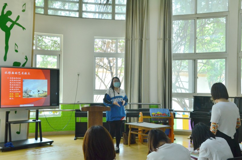 本次培训共举行四场,陈佳佳老师、胡娅老师、赖海林老师、池雪梅老师分别进行了《幼儿园实用美术-色彩应用》《水彩技法》《快速写生》《边框设计》等培训。为更好地做好培训,成都石化工业学校学前信息科组织力量对幼儿园教师日常教育教学活动所需的美术能力做了专项调研,形成了美术专项培训清单,在此上落实培训主题、编制培训教案、制作培训PPT、分阶段实施培训;在培训中采用理实一体、项目教学的方式,使培训目标更强、效果更佳。