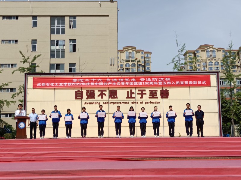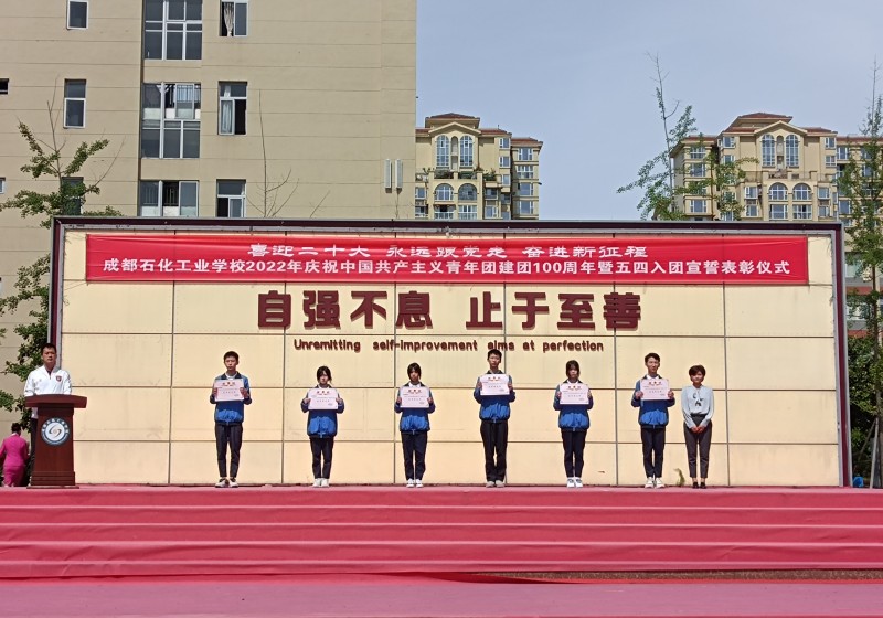 为喜迎党的二十大召开,系统推进全面从严治团,进一步增强团员意识、强化团组织观念,激发共青团员光荣感、责任感和使命感,大力弘扬五四精神,4月27日,成都石化工业学校隆重举行了主题为“喜迎二十大、永远跟党走、奋进新征程”2022年庆祝中国共产主义青年团建团100周年暨五四入团宣誓表彰仪式。