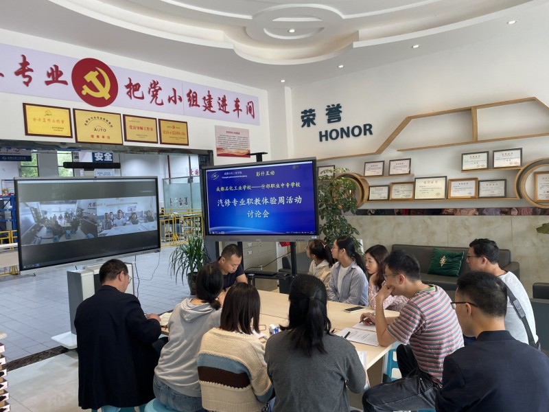 会议组织双方教师共同学习了新修订的《中华人民共和国职业教育法》,什邡市职业中专学校汽修专业部主任邓永刚分享了本校职教体验周活动开展情况,为成都石化工业学校即将到来的职教体验周活动提供了宝贵意见。随后,成都石化工业学校汽修服装科教学副科长分别对学校汽修专业传统车间5个体验项目和新能源实训基地6个体验项目做了详细介绍,双方教师对此展开深入交流。讨论会最后,双方教师表示此次会议为两地职业教育互学互鉴起到了推动作用,互相学习了职业教育发展新的理念,有助于提升专业发展新途径。