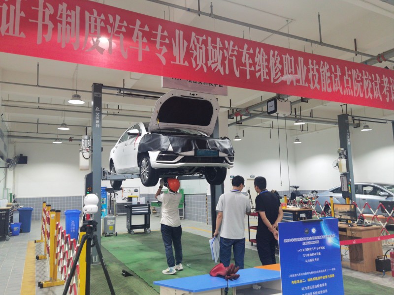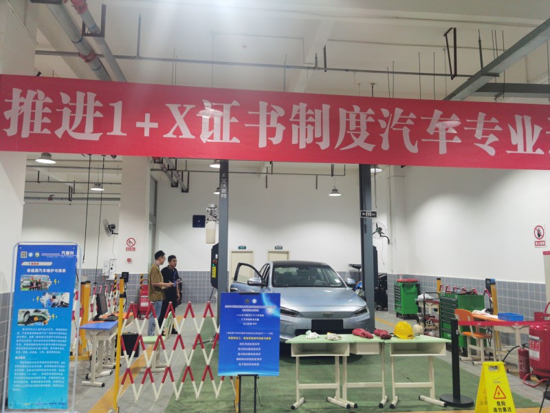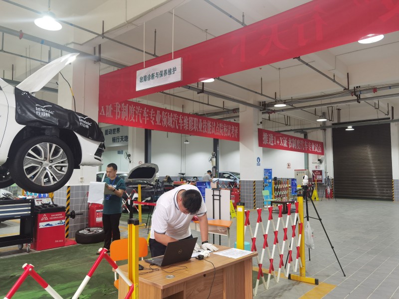 为深入贯彻落实《国家职业教育改革实施方案》《关于推进1+X证书制度试点工作的指导意见》等文件的精神,经教育主管部门和北京中车行高新技术有限公司职业教育评价组织审批,6月9日,成都石化工业学校汽车运用与维修专业在新能源汽车实训中心开展新能源汽车转向悬架与制动安全系统技术(初级)考评。