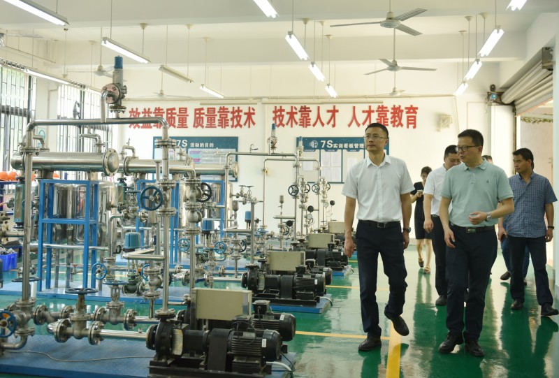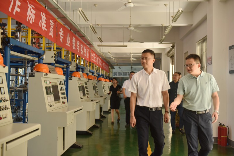 在党委书记、校长周川益的引导下,先后考察了学校行之长廊、禁毒基地、汽修实训中心、电子实训中心、酒店管理服务实训中心、机械实训基地、技能大师工作室、化工智能仿真工厂、化工与人类社会科普馆、化学工艺实训中心等,市国经公司领导对学校的办学实力和办学成果给予了高度的赞赏。