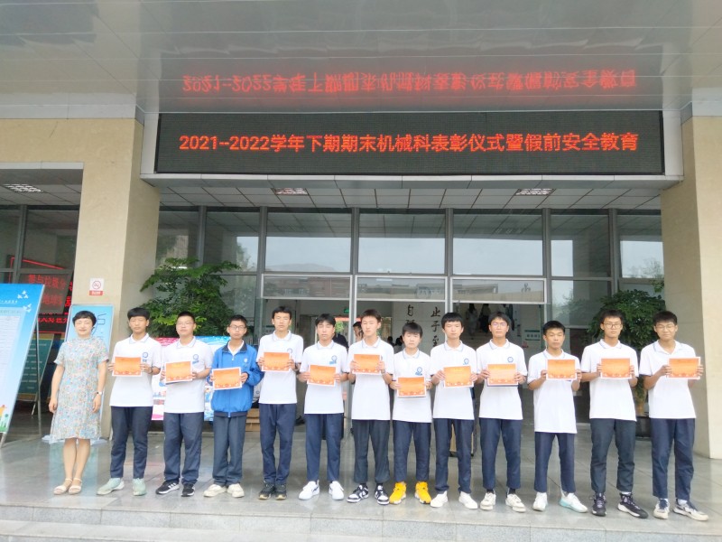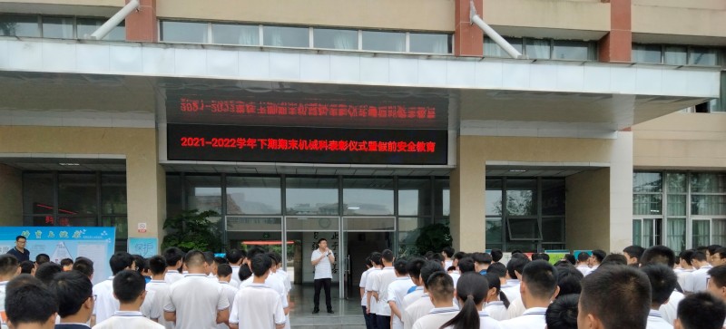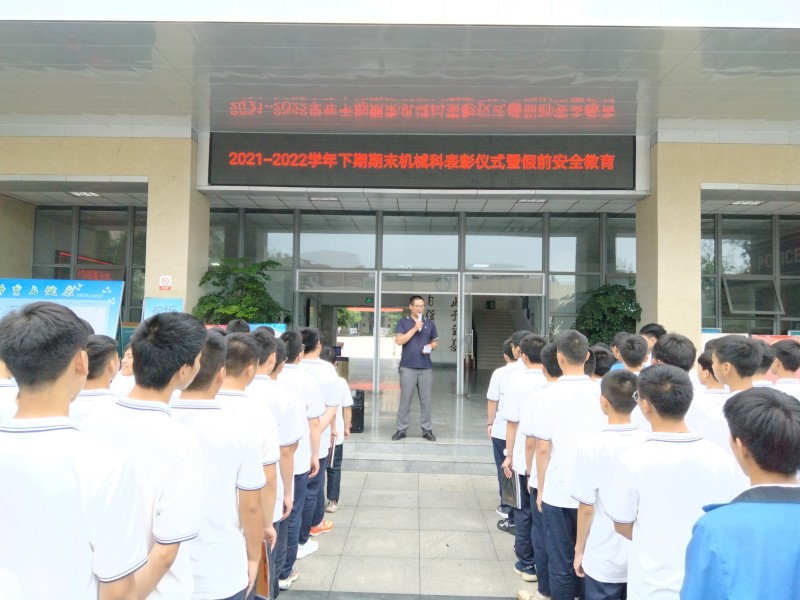 表彰会后,机械科副科长就防疫、交通安全、禁毒防艾、防溺水、预防极端天气、预防火灾水灾、防煤气中毒、饮食安全等方面进行了安全教育。机械科科长就期末考试、师生技能大赛提了要求,希望机械科全体同学认真准备期末考试、积极参加师生技能大赛,祝愿参赛师生取得优异成绩。