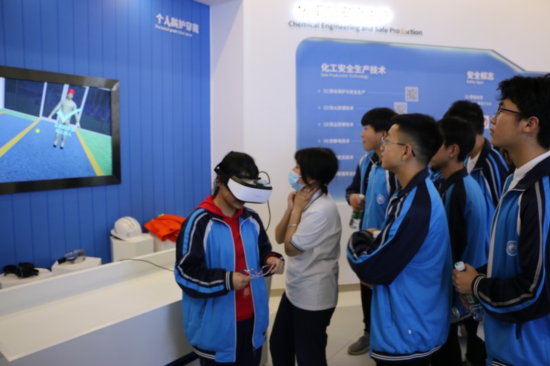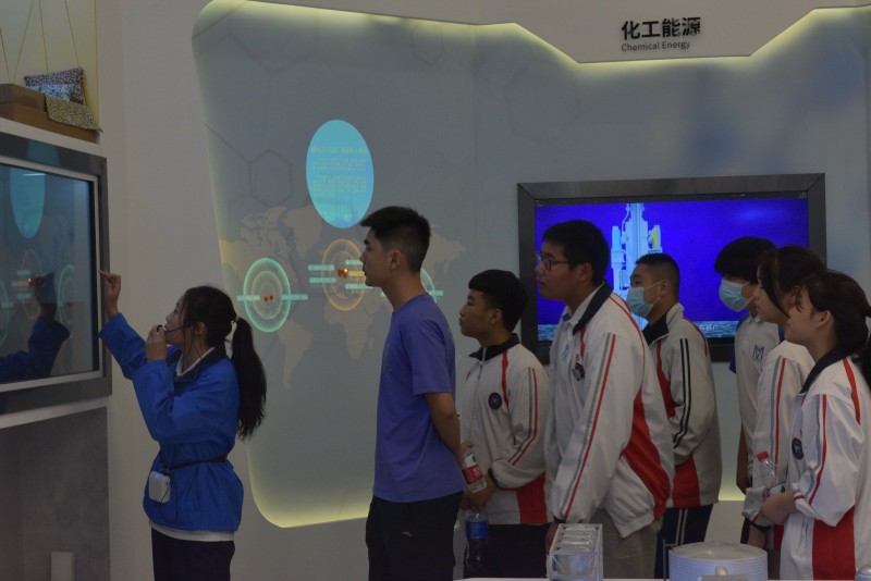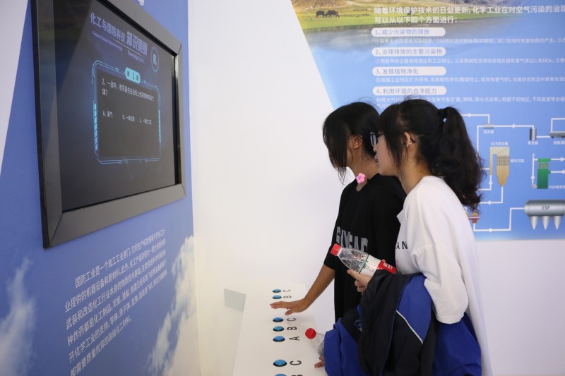 初中学生在科普馆中认真了解了中国化学工业的发展历程和重要成果。讲解员以生动的事例,对化学化工科学原理和爱国主义精神进行重点讲解。同学们认真了解化学工业发展史,感受近代化工先驱的实业报国精神。
