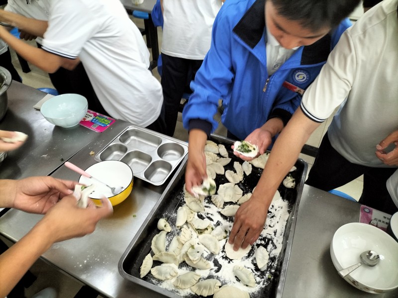 会后,全体学生干部到食堂一楼进行“包饺子”活动,活动中,同学们围坐在一起亲手实践,一边包饺子,一边围绕学习、生活、工作等话题进行交流。在同学们的共同努力下,一碗碗热气腾腾的饺子在大家期待中被端上餐桌。活动结束后,学生干部自发组织打扫食堂卫生的行为体现出劳动教育的成功。